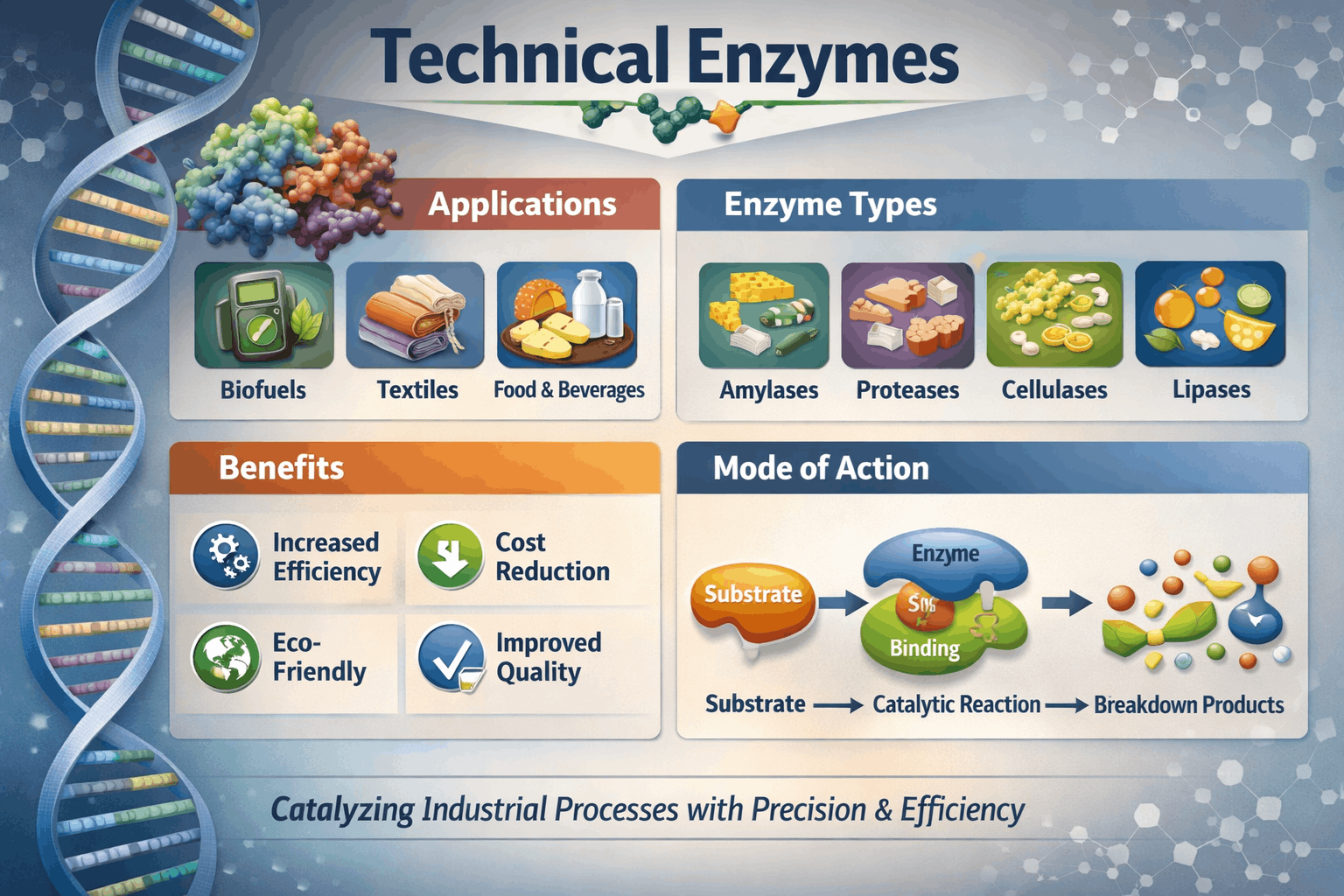 Proprietary enzyme discovery and protein engineering capability is the most powerful share driver in the technical enzymes market. Companies with advanced directed evolution, rational design, and high-throughput screening platforms can develop enzyme variants with superior performance characteristics, including enhanced thermostability, broader pH tolerance, and improved substrate specificity, that deliver measurable process performance advantages for industrial customers and justify premium pricing over generic enzyme alternatives.
