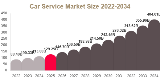 - Car Service Market Size to Reach USD 1,298.64 Billion by 2034